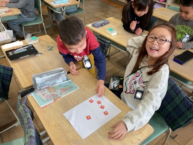 「10に3回も入ったよ!」「20と3だから23点だね!」など「10がいくつ、1がいくつ」の概念の定着をはかりました。