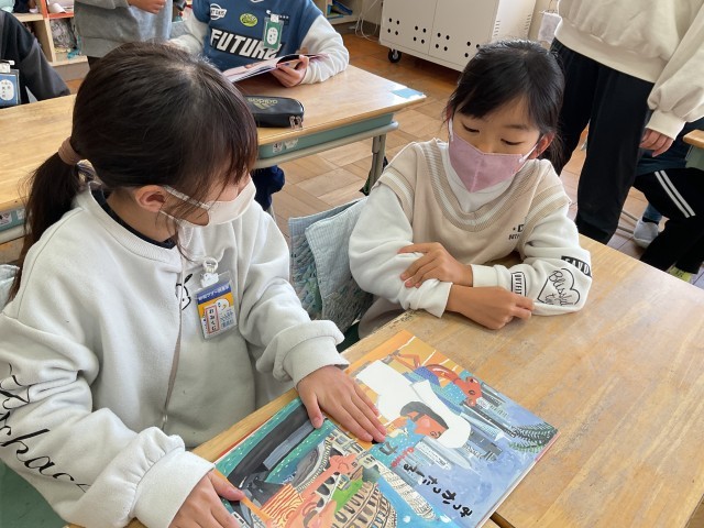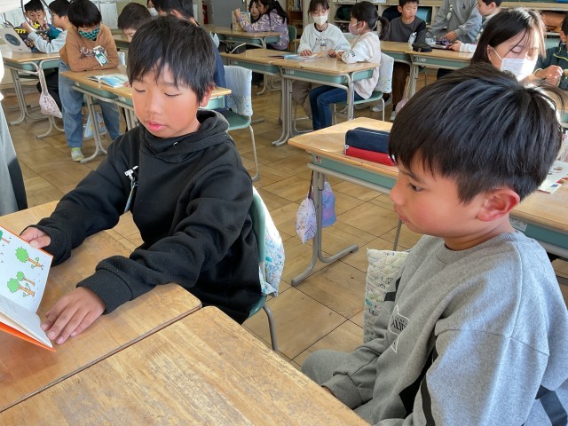 大城タイムの時間に、ペアクラスの4年生のお兄さんお姉さんが、3年生に読み聞かせをしてくれました。