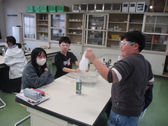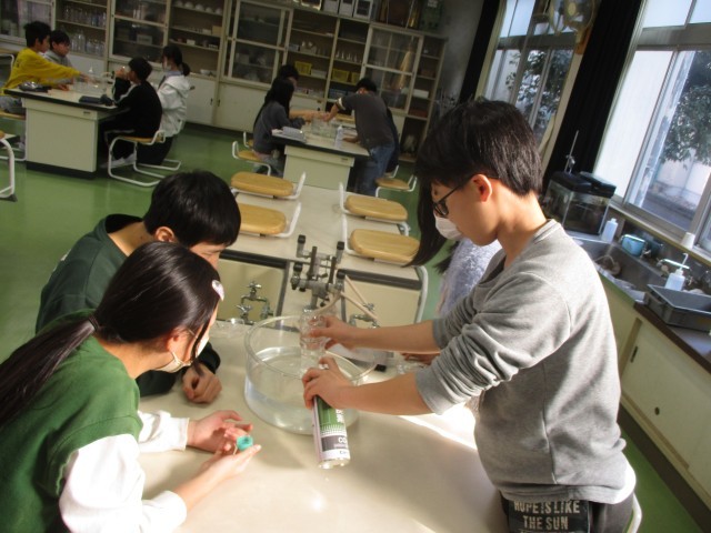 1月19日(月)に「ペットボトルに集めた二酸化炭素を水に溶かすと、どうなるか?」を実験で調べました。