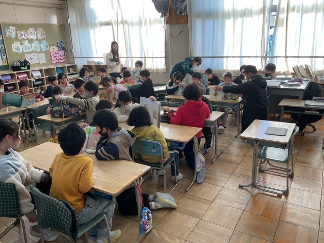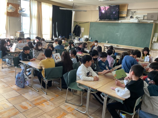 ペアクラスの5年1組のお兄さんお姉さんに絵本の読み聞かせをしてもらしました。本との出会いに、いろいろなカタチがあっていいな〜なんて思えたひとときでした。
