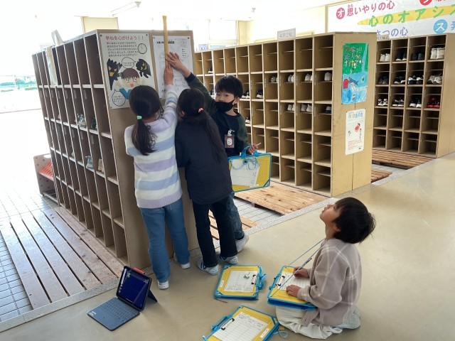 算数では、いろいろなものや場所の長さを予想して測りました。量感を鋭く高めることができました。