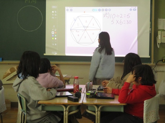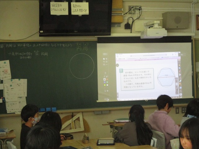 1月28日(水) 算数で円と正六角形の問題を考えました。