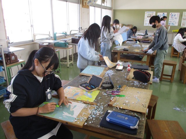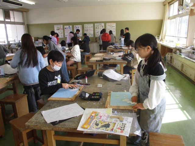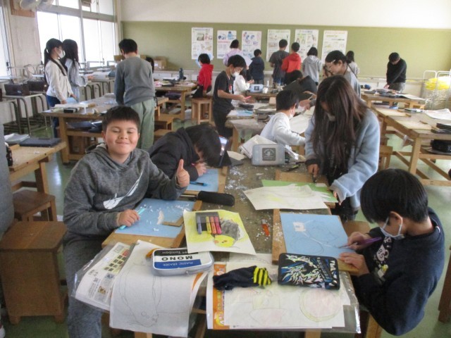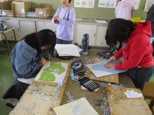 2月10日(火) 5年の図工は多色刷りの版画を行っています。