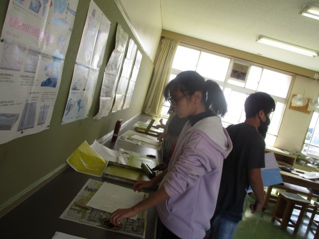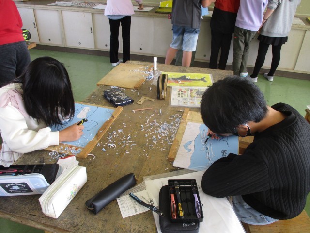 5年図工 ほり進めて刷り重ねて