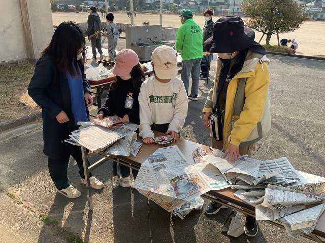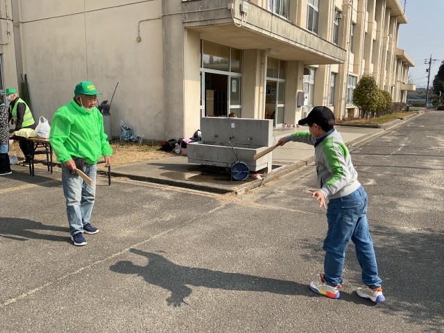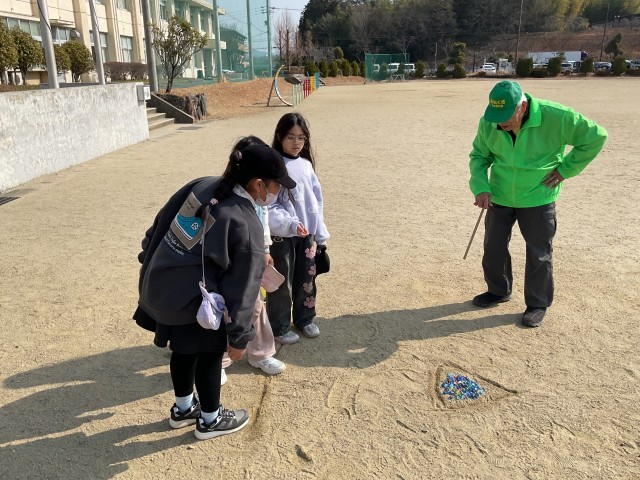 外では、竹とんぼ・ビー玉・紙てっぽう・紙飛行機・めんこ・羽根つきを楽しみました。友達と声をかけ合いながら夢中になって遊ぶ姿や、うまくできたときに歓声をあげる姿がとても印象的でした。水土里の会の皆様のお力添えにより、笑顔あふれる体験活動となりました。
