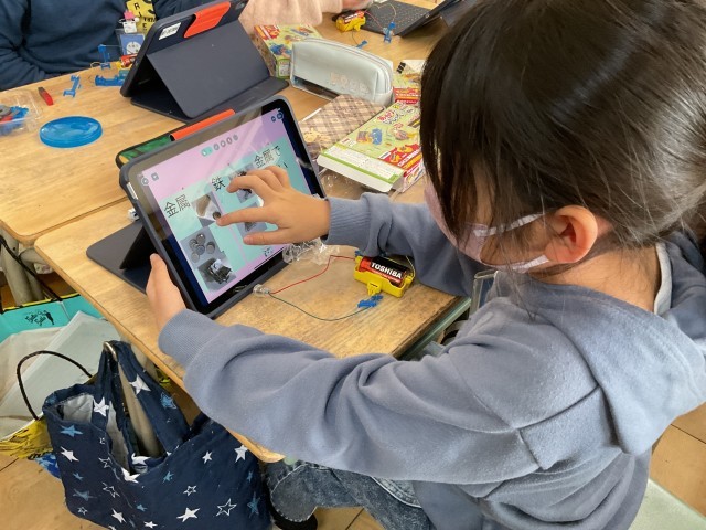 「磁石にくっつくのは?」、「電気を通すのは?」と、今まで習った性質を思い出しながら実験しました。