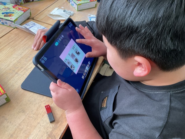結果を、しっかりタブレットにまとめて先生と確認することができました。