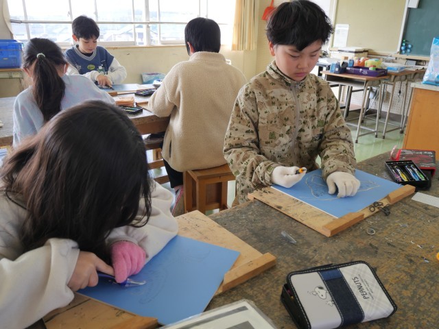 4年生 彫刻刀が始まったよ!