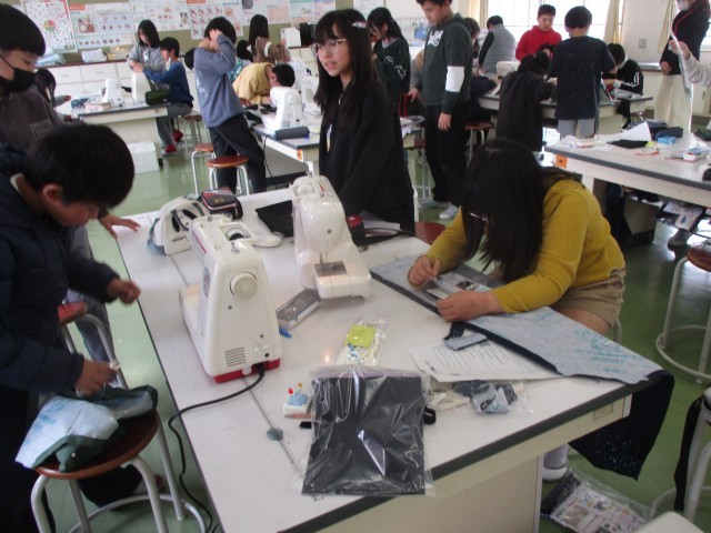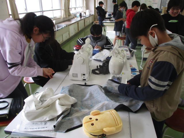 2月26日(木) 5年生の家庭科では、エプロンを作っています。