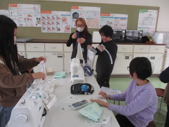 習ったばかりのミシンで、どの子も一生懸命に縫っていました。