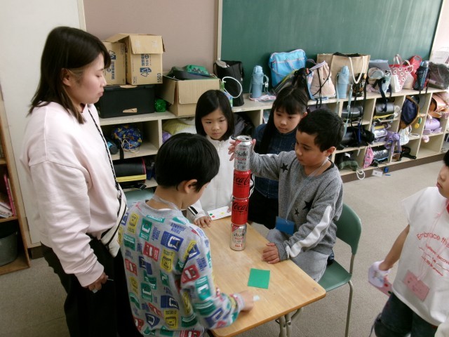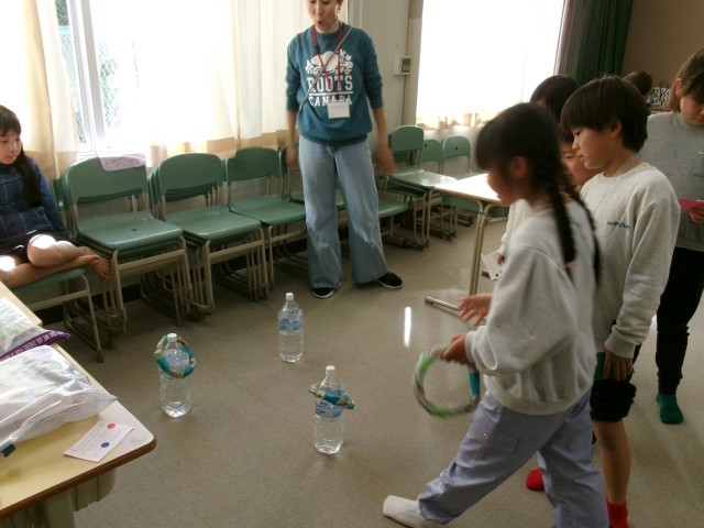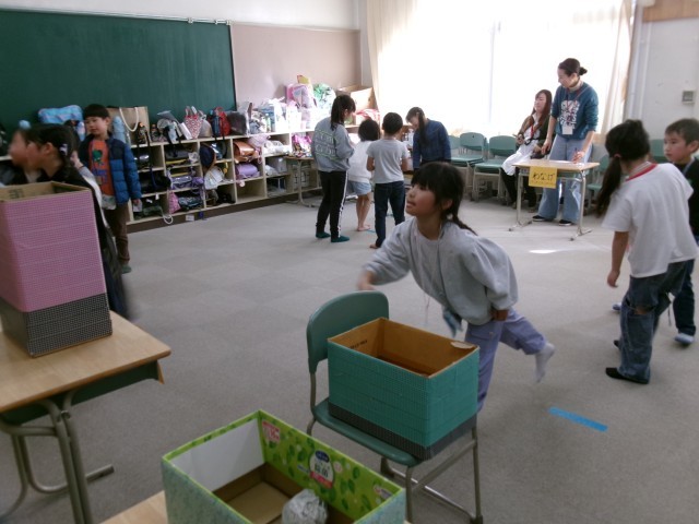 輪投げや缶つみ、じゃんけん、ボール入れなど指導員さんたちが用意してくれた遊びで楽しみました。