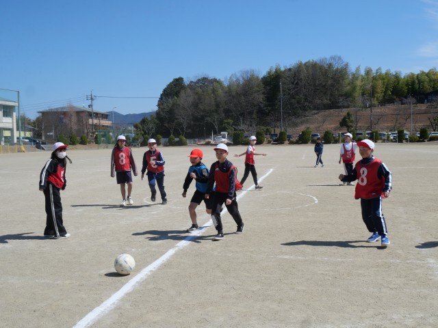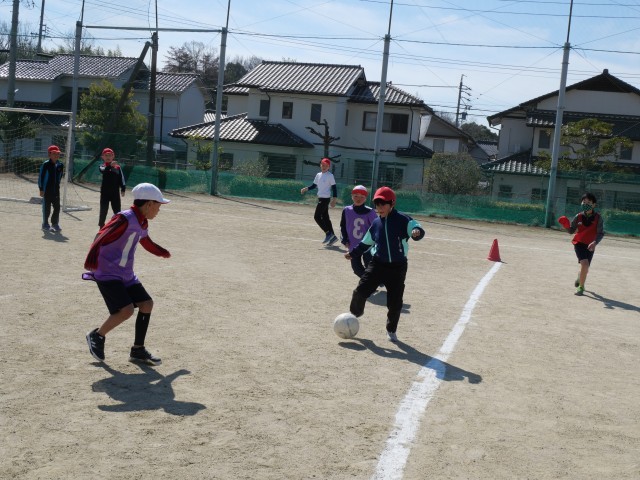 4年生最後の体育は、サッカーを学習しています。