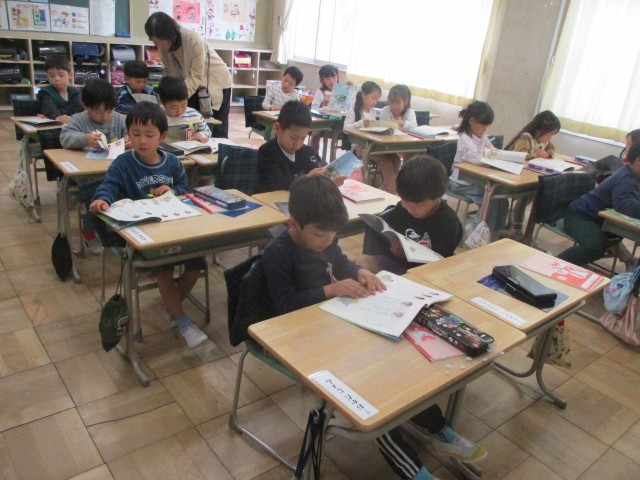 教科書を開く、先生のお話を聞く、みんなで音読するなど、教室のお勉強に慣れてきましたね。