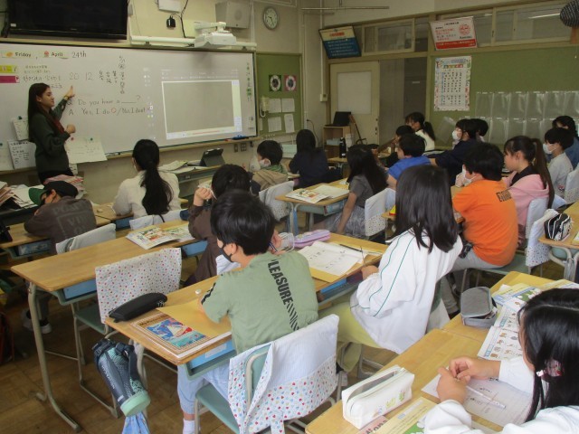 4月24日(金) 6年外国語は、好きなものや宝物を紹介する表現を練習しました。