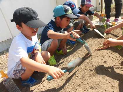 これから、あまくおいしいイモができるまで2年生みんなで、見守りながら育てていきます。野菜づくりを通して、植物の姿に興味をもち、生き物に対するあたたかな心を育んでほしいと思います。