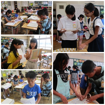 8月24日(金)は、大城小学校の出校日です。久しぶりに大城小学校に元気な声や姿が戻ってきました。大きな事故もなく、充実した夏休みを過ごせていることが、子どもたちの表情や話から伝わってきました。出校日の学活では、夏休みの宿題の答え合わせや提出をしたり、夏休みビンゴゲームをしたりと、有意義な時間を過ごしました。