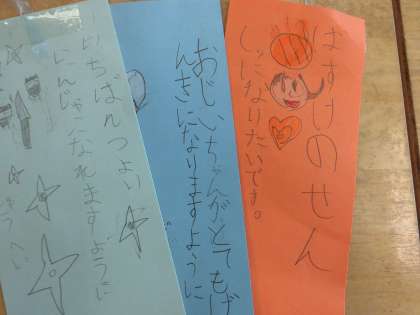 よく見ると、1年生らしい願いごとがいっぱいです。