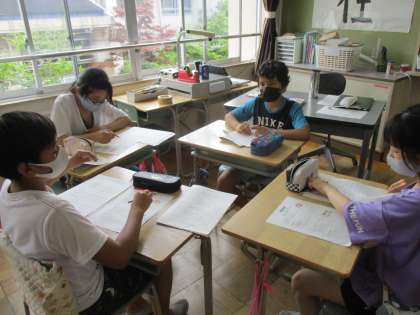 10月初めの野外学習に向け、準備が始まりました。企画部会、ファイヤー部会、食事部会、美化部会に分かれて、しおりの作成に取りかかりました。2学期に入ると、「野外学習までの残り1ケ月」となります。その時に困ることがないよう、先を見通して今後も準備していきたいと思います。