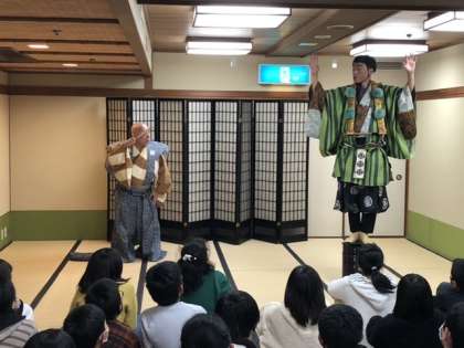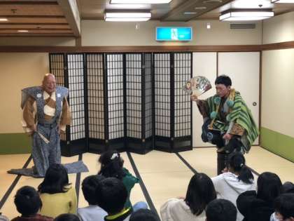 国語の授業で、動画を見たり、実際の台詞をしゃべってみたりしていますが、目の前で、実際の演技をみるのは、すごい迫力です。
