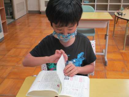 最初は、一つの言葉を調べるのにずいぶん時間がかかっていた児童も、授業の終わりには手際よく『国語辞典を使える』ようになりました。