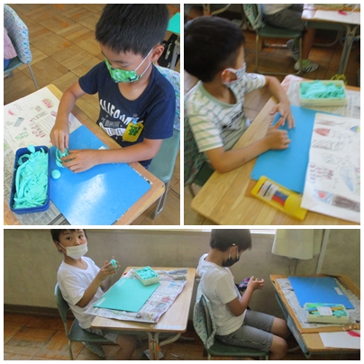 次の図工は粘土です。自分の思う「ごちそう」を粘土で表現します。2組は本日から作り始めました。1組は来週スタートの予定です。(1組の写真は音楽を載せました。)