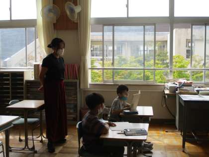 今週はアニモ見合おう週間で、いろんな先生がアニモの子どもたちの様子を観にきています。二年生の国語では、がまくんとかえるくんの気持ちを考えていました。