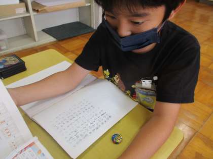 『あまりのあるわり算』は、今月中旬より学習を進めているので、今日は「練習」のページに取り組みました。上の画像のように、子どもたちは真剣な眼差しで問題を解きました。