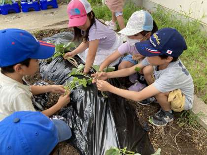 食べ物を食べることは楽しいことではありますが、食べものを育てることもまた楽しいことであるのだなと、苗植えにとり組む子どもたちを見て実感しました。みんなでお芋を食べられる日を心待ちにしながら、これから芋苗を大切に育てて行きます