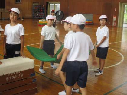 次に、みんなで協力して「跳び箱・マット・踏み板」を準備し、『開脚跳び』の練習に取り組みました。「今度は、違う跳び方も練習してみたいね」との声が聴かれました。頑張って練習できました!