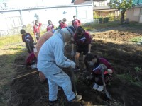 毎年恒例の芋ほりと花植えを行いました。今回はふだんお世話になっている応中支援ボランティアの方と、ジュニア奉仕団の生徒が一緒に汗を流しました。