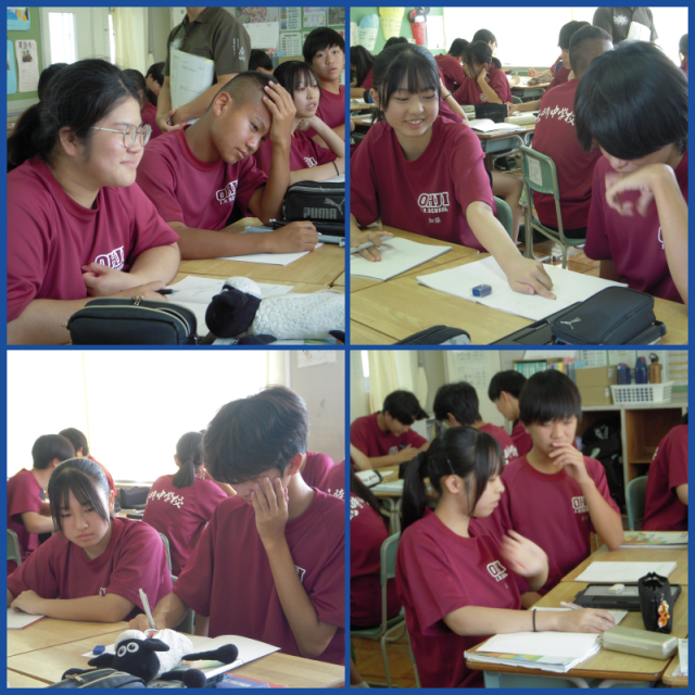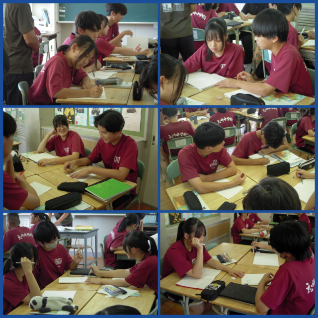 二次方程式を利用した問題に取り組んでいました。多くのグループが自然と学び合いへと発展していました。みんなのレベルが上がっているのを感じます。