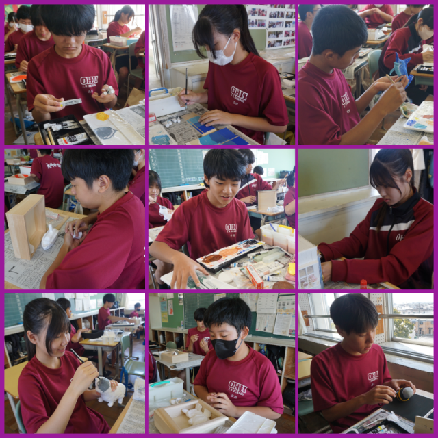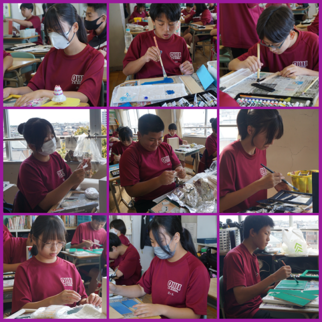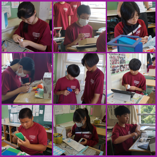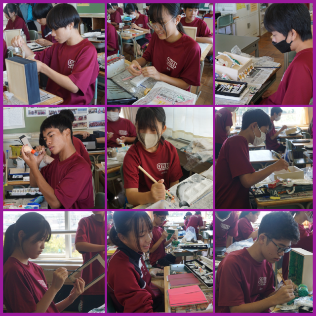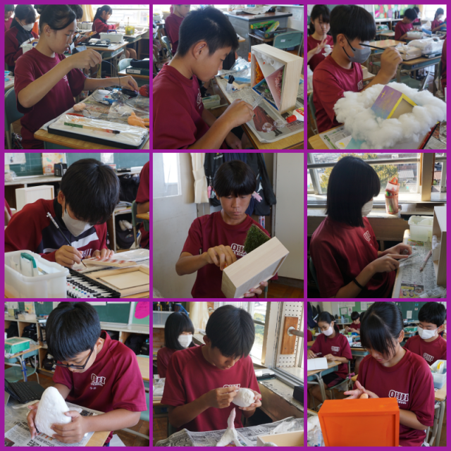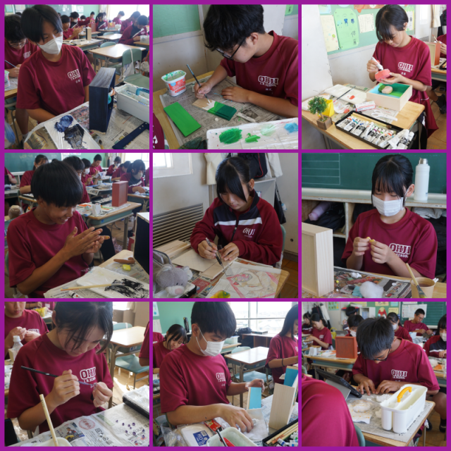 BOXアートに取り組みました。アイデアあふれる作品がたくさんあって、完成作品が楽しみです。