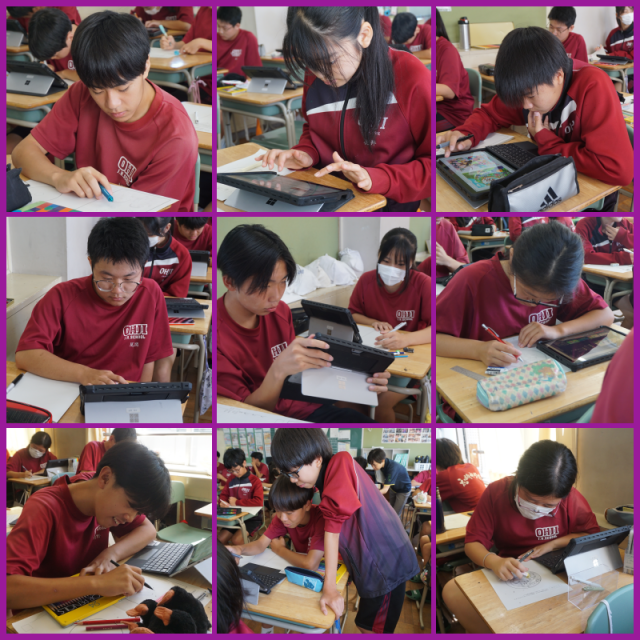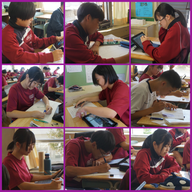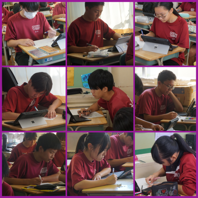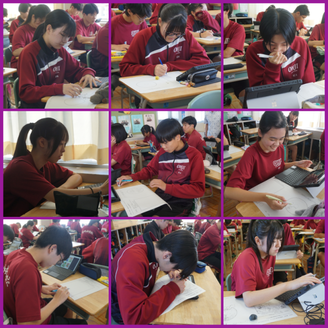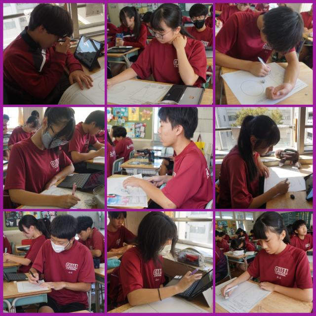 卒業記念品のレーベルデザインを考えました。3年間の思い出があふれるデザインばかりでした。