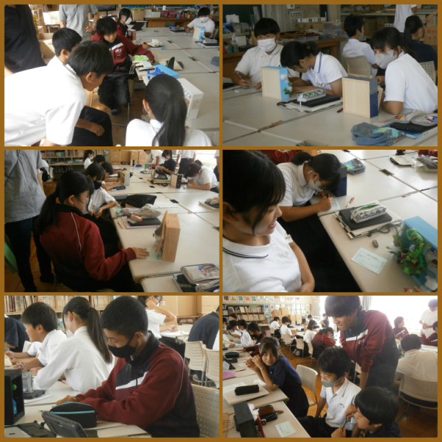 美術 2年生 公開日 2025/10/09 更新日 2025/10/09 学年ギャラリー BOXアートの名札書きを行っていました。コメントにもこだわりが見られます。文化祭での作品鑑賞が楽しみです。 +1 いいね(0)