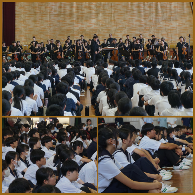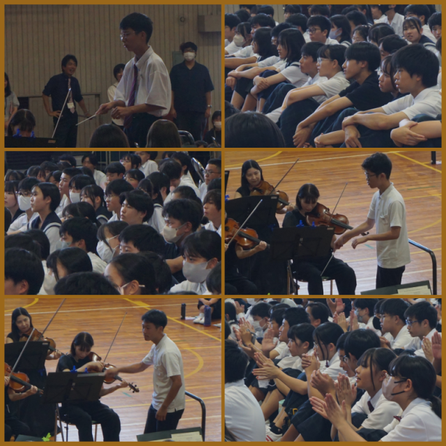 中部フィルハーモニー交響楽団の方々にお越しいただき、オーケストラの鑑賞を行いました。素敵な音色に引き込まれ、あっという間の1時間でした。各学年の選ばれし指揮者は、緊張しながらも堂々とタクトを振っていました。