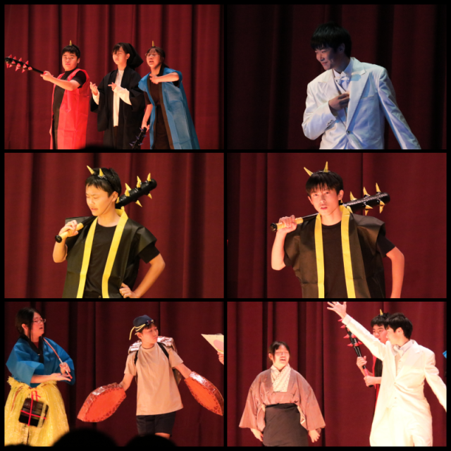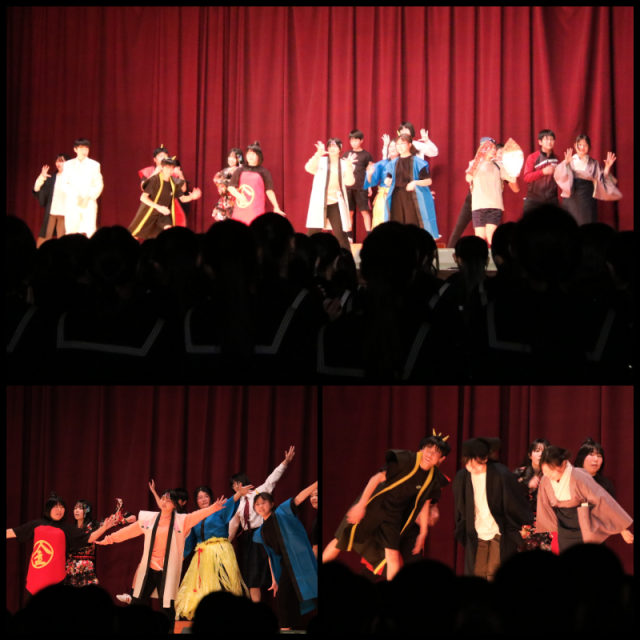 「山へ芝刈りへ」の漫才から、午後の部がスタートを切りました。演劇部へも、温かい拍手や声援が送られ、大盛り上がりで終わりました。