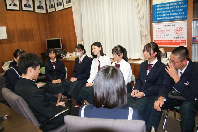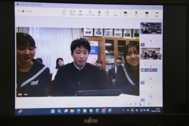 前回に引き続き、2回目の子どもミーティングです。市内の他の中学校とオンラインでつなぎ、「スマホの実態」について話し合いました。今回は新執行部もオブザーバーで参加し、最後には向かい合って3年生の思いを後輩に引き継いでいました。