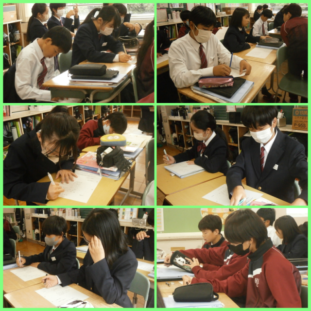 国語 1年生 公開日 2025/11/07 更新日 2025/11/07 学年ギャラリー テスト範囲の文法のプリントに取り組んでいました。小学校で学んだことをきちんとアウトプットして活かしていました。 いいね(0)
