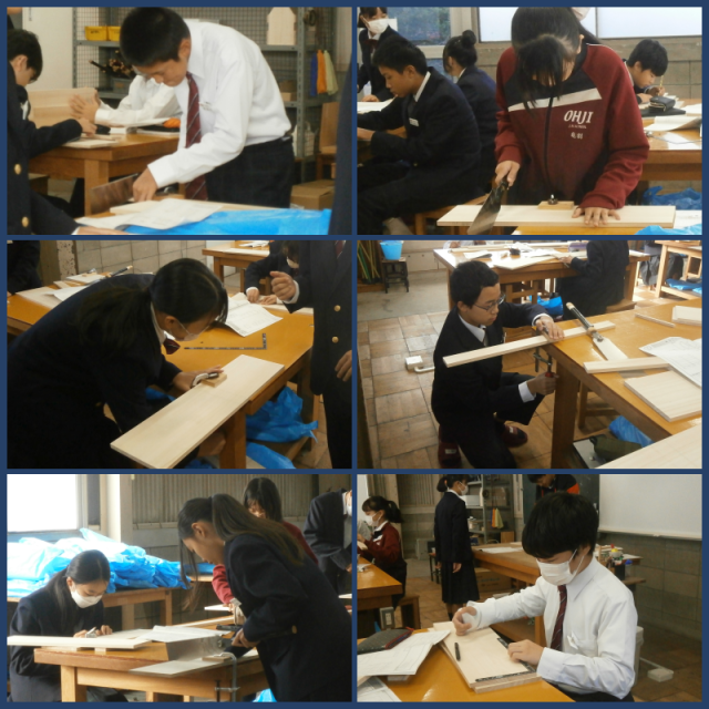 けがきを終えて、材料をカットし始めている生徒が増えてきました。けがをしないように、周りにも気を配りながら、作業を行えるといいですね。