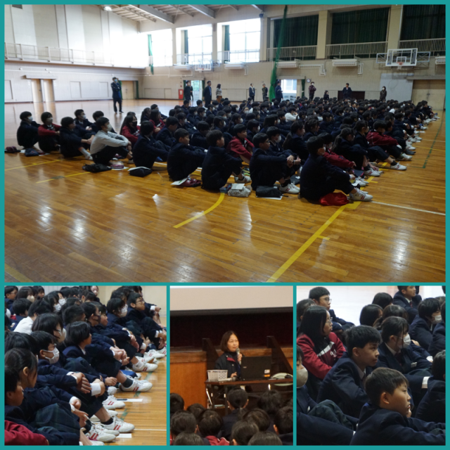 セルフディフェンス 1年生 公開日 2025/11/21 更新日 2025/11/21 学年ギャラリー 小牧警察署 生活安全課の方々にお越しいただき、インターネットやスマホトラブルの対策等について講話をしていただきました。他人ごとではなく、自分にも起こりうることです。トラブルを起こさないことはもちろん、巻き込まれたら、早めに相談するようにしましょう。 いいね(0)