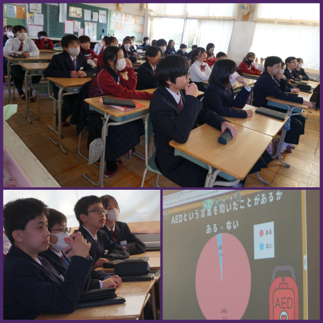 どのクラスも真剣に救命救急の動画鑑賞を行っていました。学んだことをぜひ行動に移してみて欲しいです。みなさんにもできることが必ずありますよ。