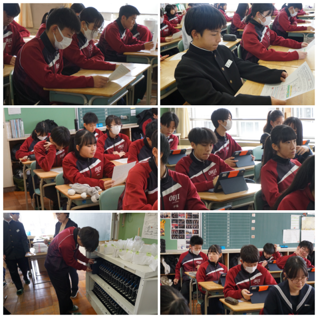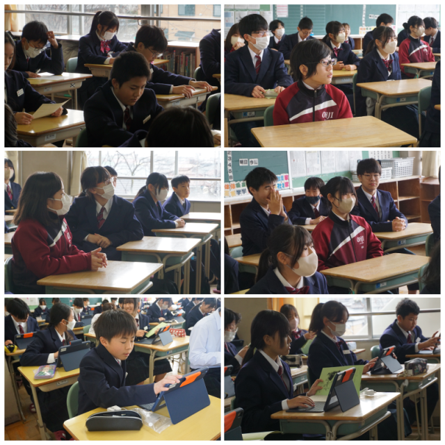 学活 公開日 2026/01/08 更新日 2026/01/08 学年ギャラリー 課題の提出や目標書き、入試の話等を行っていました。また、iPadの設定作業を行いました。ルールを守り、大切に使用しましょう。 +6 いいね(0)