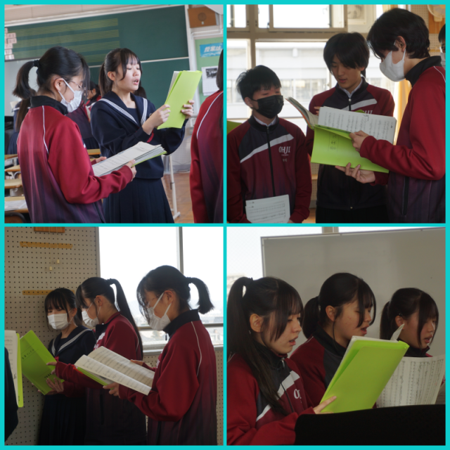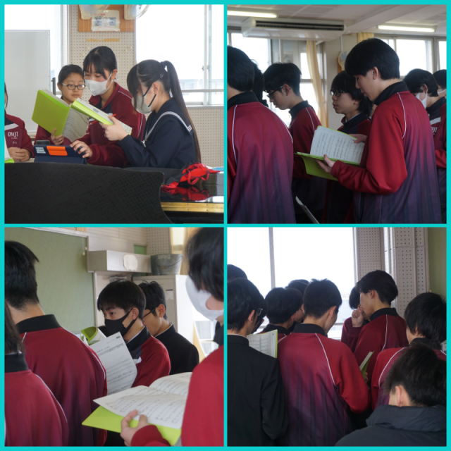 卒業式で歌う合唱曲の練習が始まりました。パートごとに音取りなど、自分たちで考えて練習に取り組んでいました。