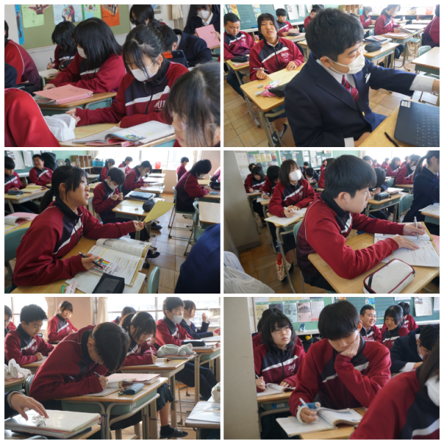 日記を書いています。今まで習った単語や構文を使うのはもちろん、わからない単語は調べたり、先生に確認して進めていました。英語力が確実にアップしていますね。