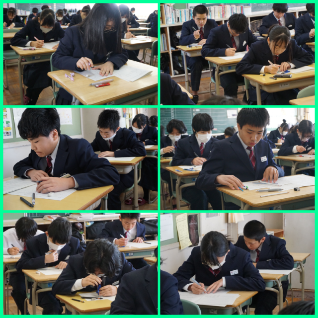 学年末テスト 1年生 公開日 2026/02/10 更新日 2026/02/10 学年ギャラリー 初日は数学と社会、体育の3教科が行われました。明日は祝日です。上手に時間を使い、残りのテストに備えましょう。 +1 いいね(0)