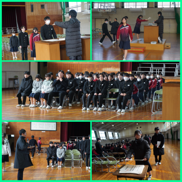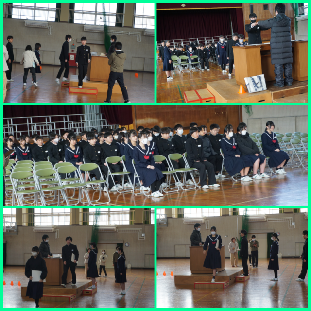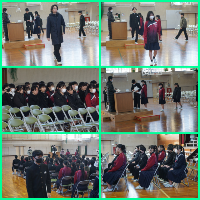 2クラスずつ卒業式練習を行いました。練習を積み重ね、どんどんと良くなってきています。本番、すてきな姿を見てもらえるようにしましょう。