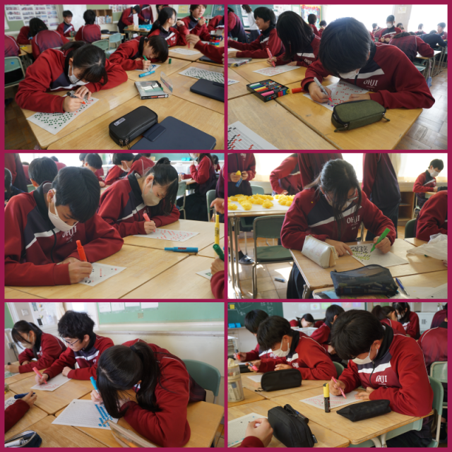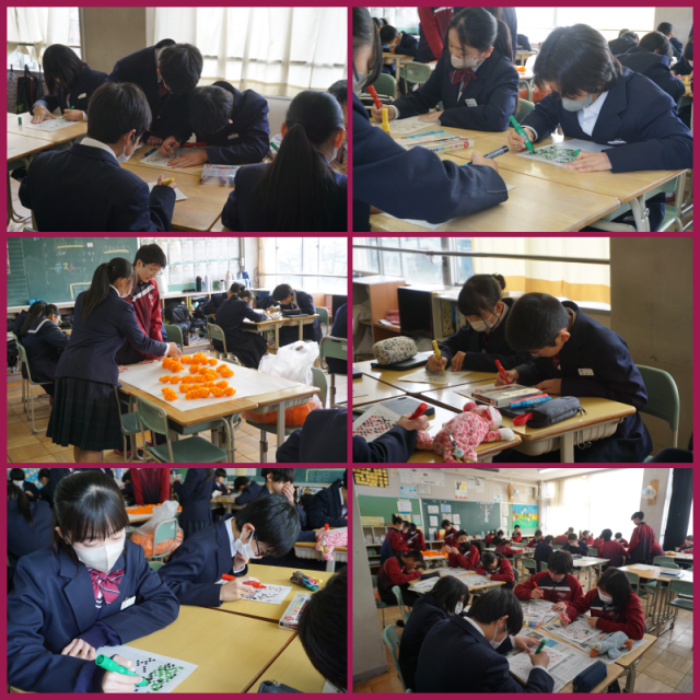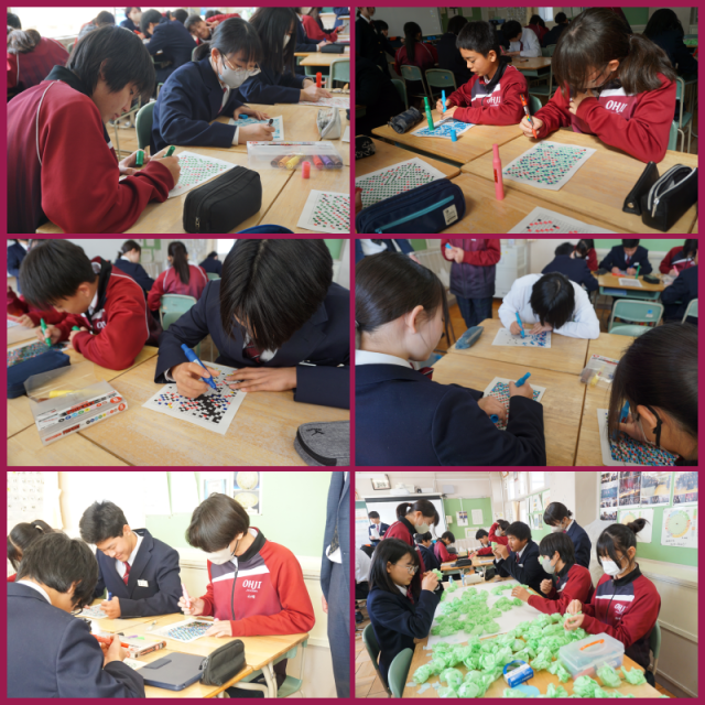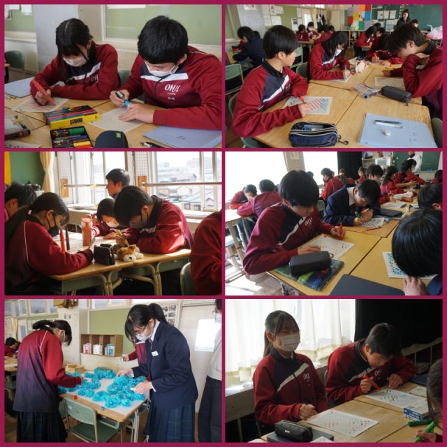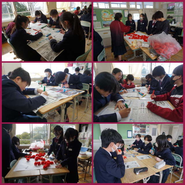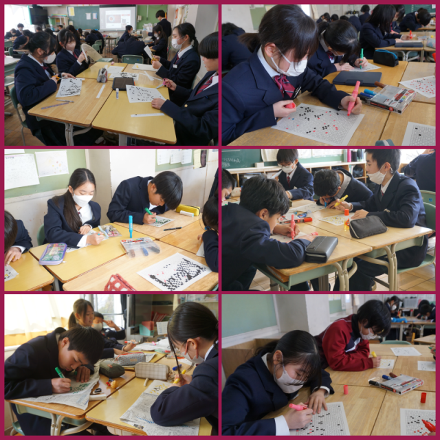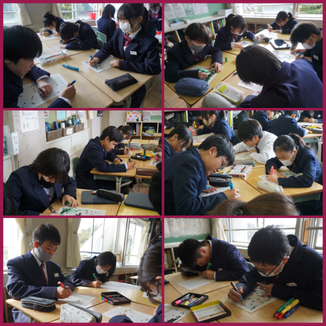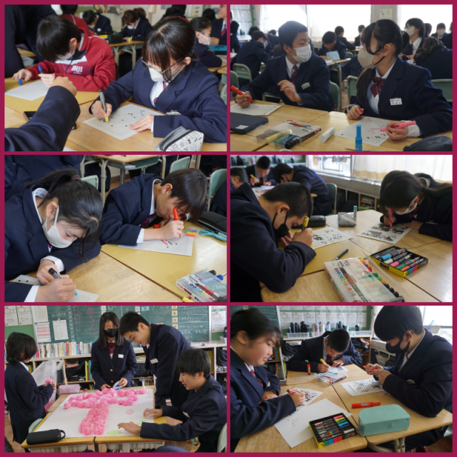 卒業式に向けて壁画を作り始めました。一人ひとりが担当部分を丁寧に塗り進めていました。