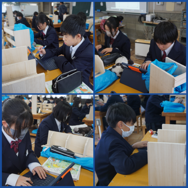 作品が完成し、振り返りを行っていました。せっかく作ったので家で活用して下さいね。