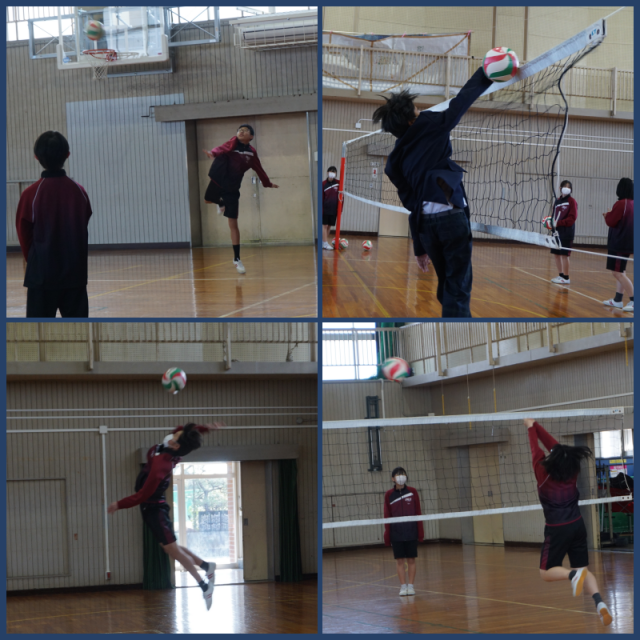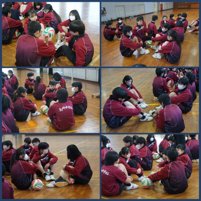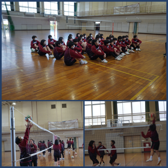 バレーボールに取り組んでいます。チーム全員が、攻撃に参加する方法を話し合い、試合に臨んでいました。