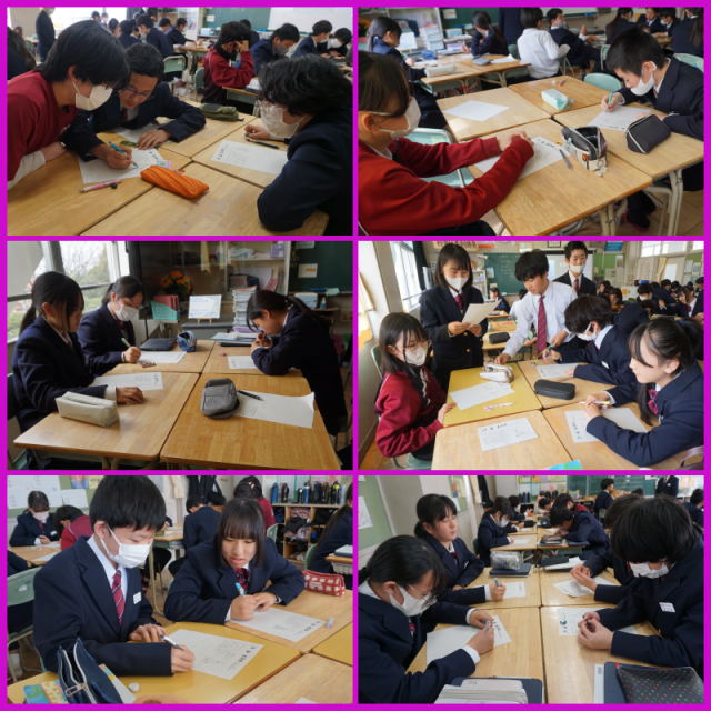 振り返りテストを行いました。今日は、難しさMAXでした。グループ、クラスで協力し、解いていました。